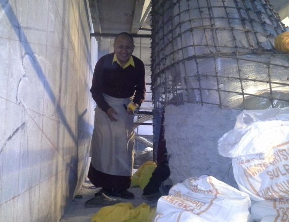 To the Teacher’s right is a 25-foot statue of Guru Nangsi Zilnön, the sublime teacher of the supreme secrets; to the Guru’s right and left, respectively, are 6-foot-high statues of Gyalyum Yeshe Tsogyal and Mandarava. Surrounding him are the eight manifestations of Guru Rinpoche and, above that the masters of the buddha family Samantabhadra and Samantabhadri. To the Teacher’s left is a 25-foot statue of the transcendent and accomplished conqueror Arya Tara, the foremost and venerable source for the emanations of the vast hosts of dakinis of the mother tantras. Above her is the master of her family, the dharmakaya Supreme Mother (Yumchenmo), and Tara is surrounded by the Taras who protect from the eight kinds of fear. To Tara’s right and left, respectively, are six-foot-high statues of the goddesses of power Kurukulle and the wrathful Simhamukha.